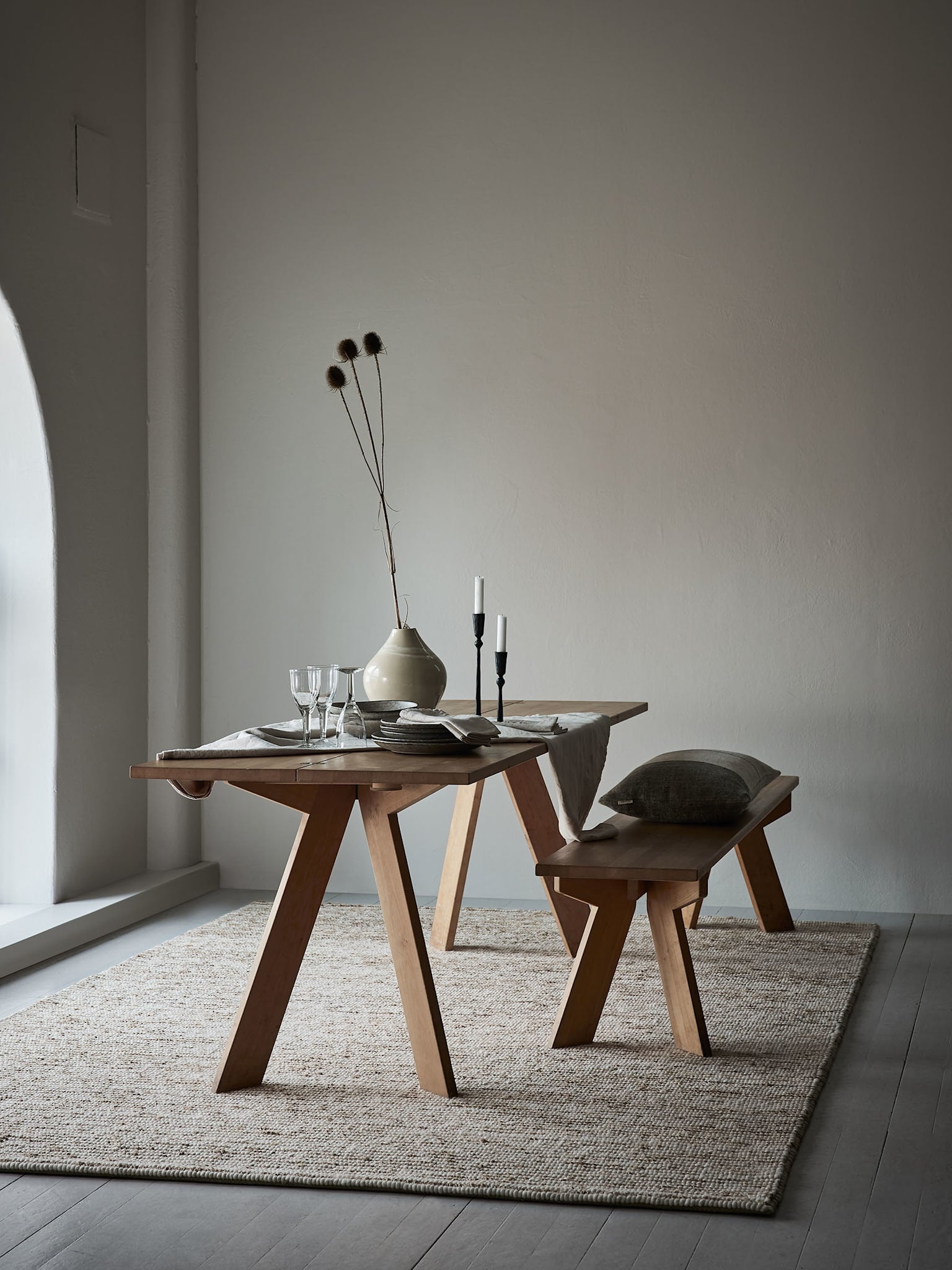 Handgjorda mattor i en neutral färgskala