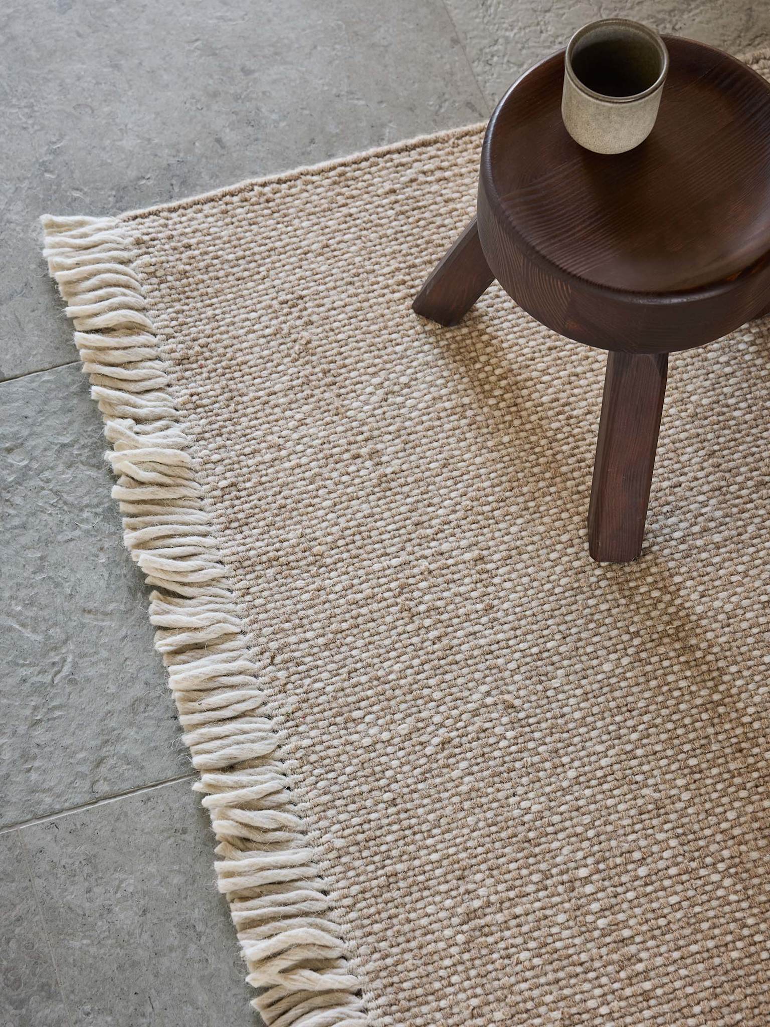 Handgjorda mattor i en neutral färgskala